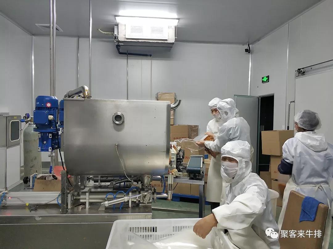 聚客来公司自有现代化加工工厂,央厨集中供应,除了给旗下的牛排连锁、火锅连锁、现卤便利、西餐厅供货外,聚客来还对外提供加工定制,机械化流水作业,满足市场源源不断的货源需求,为聚客来布局全国牛排连锁提供强有力的后盾支持。