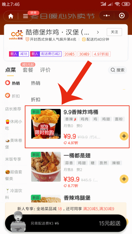 限时半价吃炸鸡,【一大桶】仅需9.9元!10:00-21:00抓紧美团外卖开抢吧!