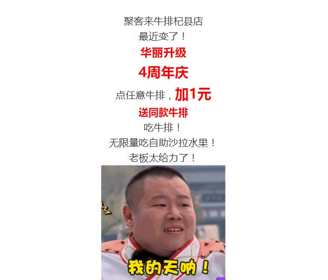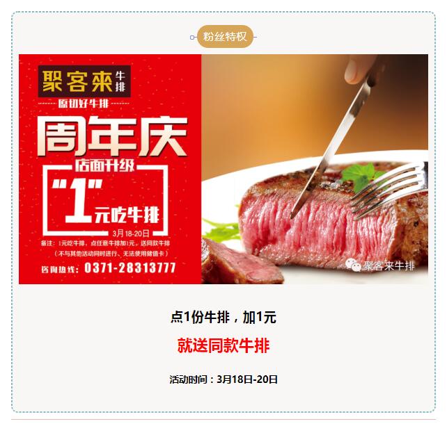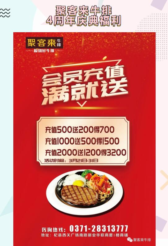 【杞县聚客来牛排4周年店庆】1元吃牛排,3天狂欢宴,小丑表演来助阵,水果自助不限量,没搞错吧?