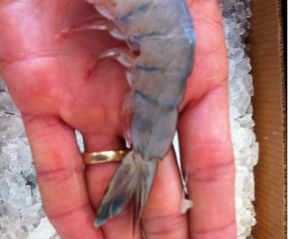 右手中指不小心被虾尾刺破了。