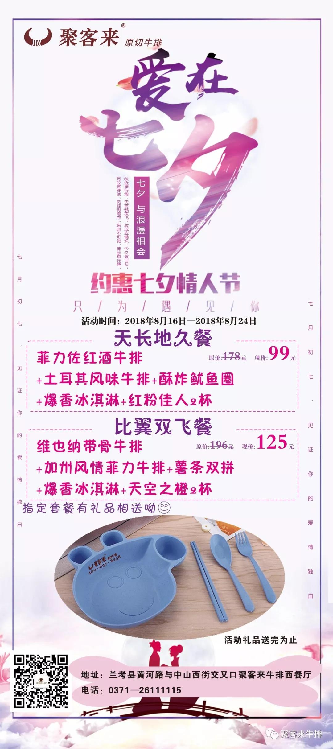 聚客来牛排倾情推出七夕情人餐,为爱情加油!为亲情加分!