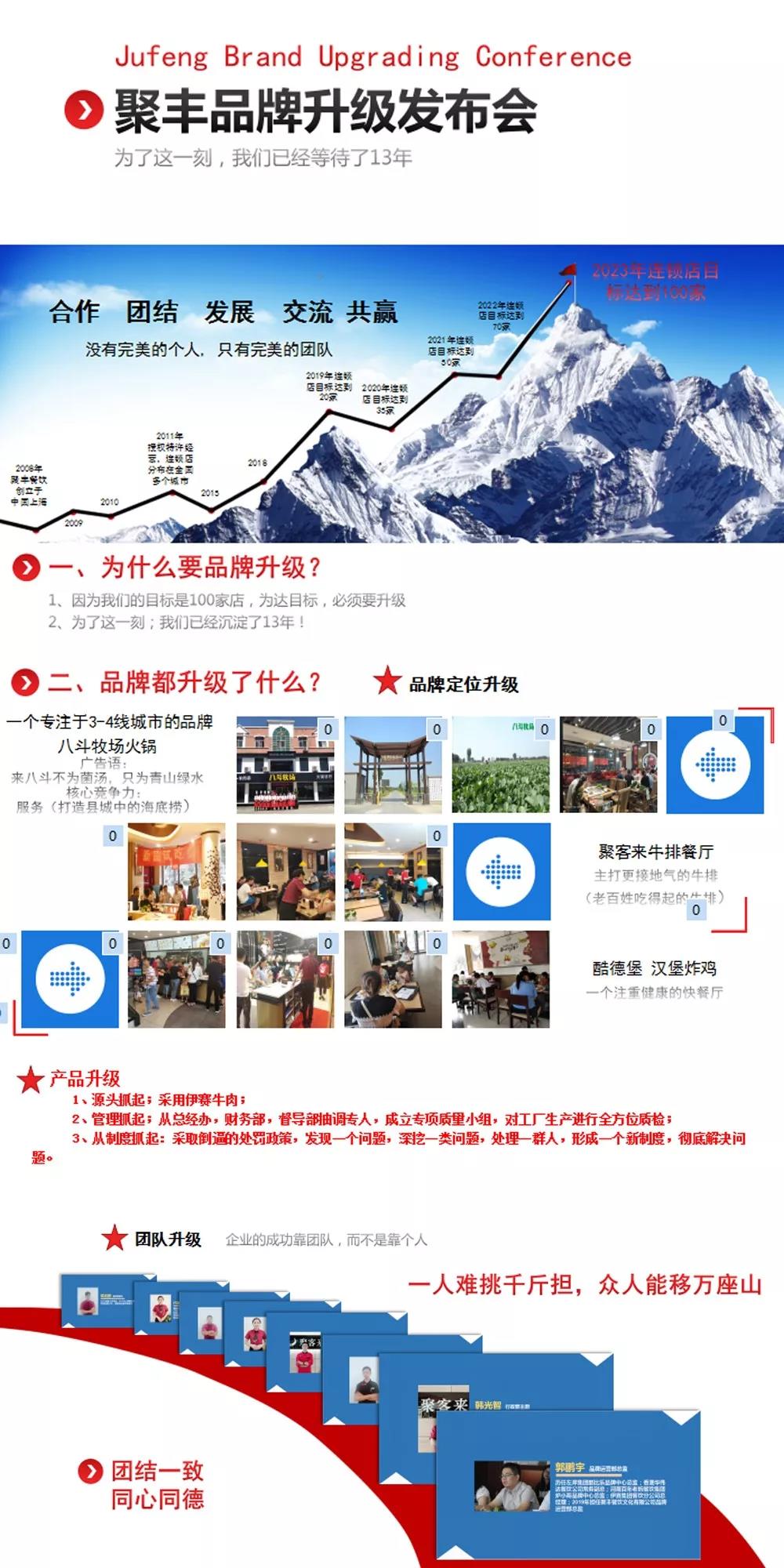 2019年7月19日对于聚丰餐饮来说这是一个特殊的日子,在侯总以及郭总的带领下,我们全体领导以及员工积极配合,圆满完成了聚丰品牌升级发布会。