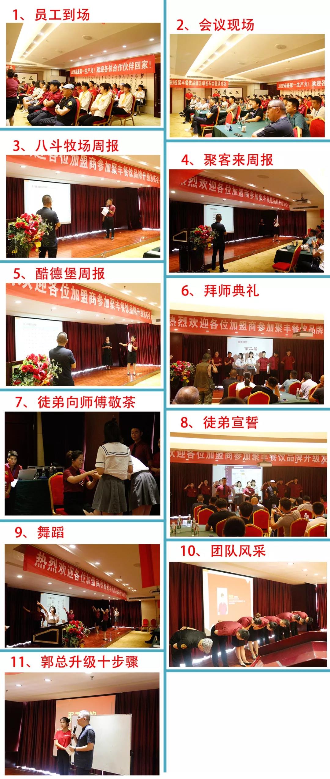 通过这次品牌升级加盟会,让加盟商从工厂(原材料生产地)到餐桌用餐,一条龙式全方位参观学习,从而为他们奠定一个信心;为我们五年完成100家店面奠定了一个基础,让我们的加盟商了解相信我们有这个实力。