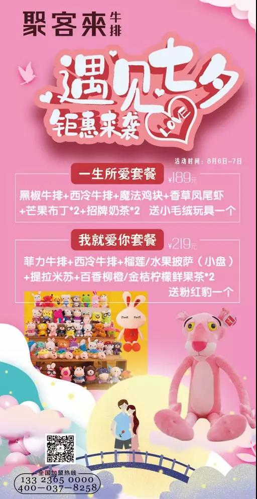 七夕!七夕!!还在发愁陪女朋友去哪约会吃饭吗?聚客来、八斗牧场、酷德堡搞活动了!!快来吧!